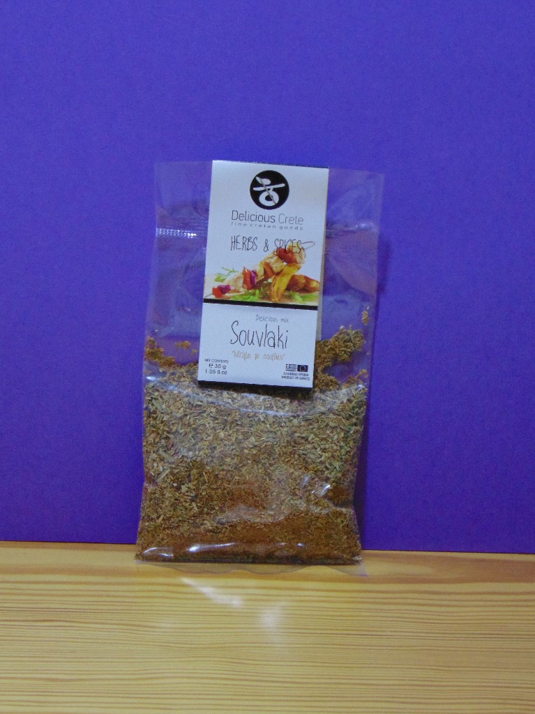 A wonderful spicy and aromatic combination , that pass all the flavor and aroma or herbs ans spices in the meat. Enjoy the uniqueness of a Greek souvlaki. Used as a marinade but also during cooking.