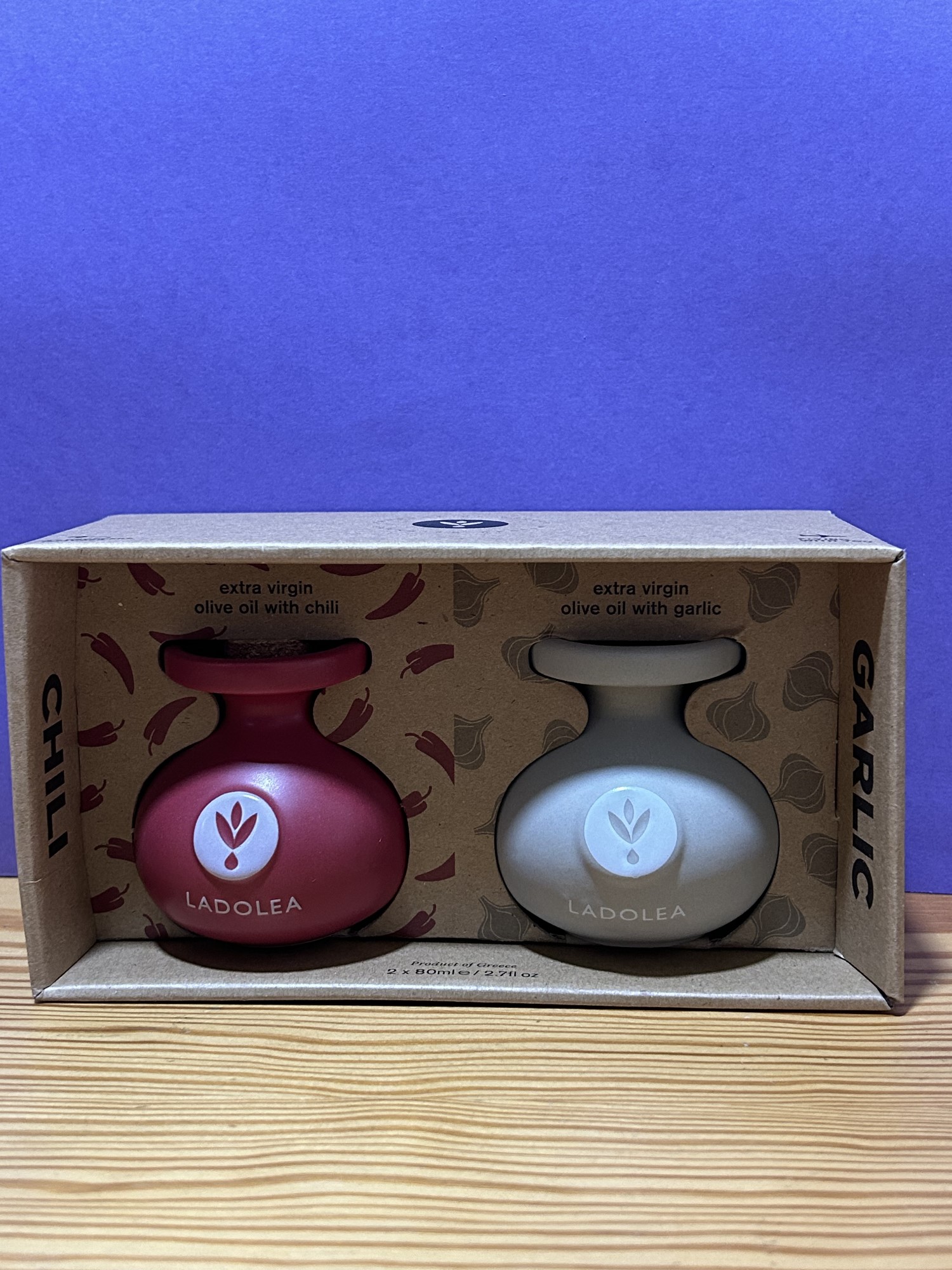 This is a gift set with Ladolea extra virgin olive oil with chili and garlic.