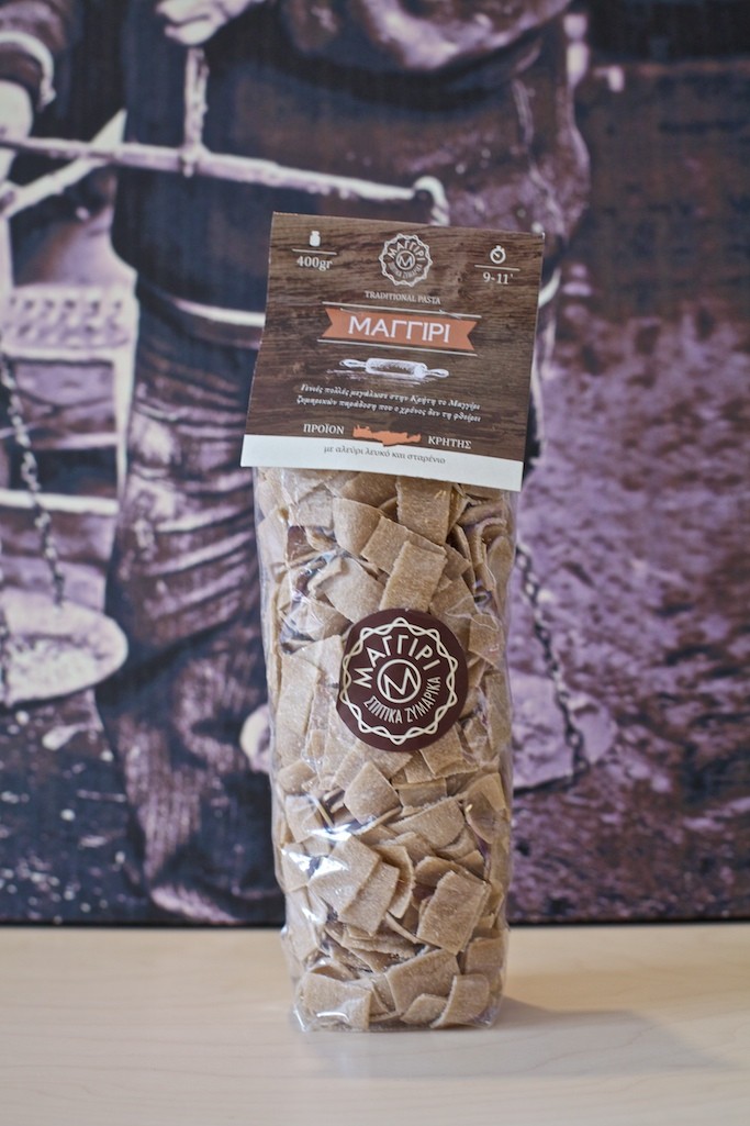 Hand-made, all natural whole wheat squares of traditional Cretan pasta. In days gone by, this was served by boiling some of the pasta and frying some of it in olive oil, then mixing the two and topping it with grated Anthotiro cheese.