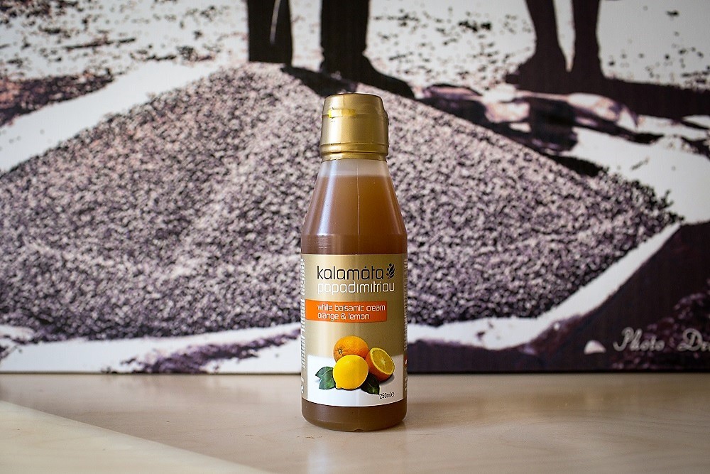 White balsamic cream combined with lemon and orange. Brush it on fresh fish, grilled shrimp or chicken breast. Gluten Free.